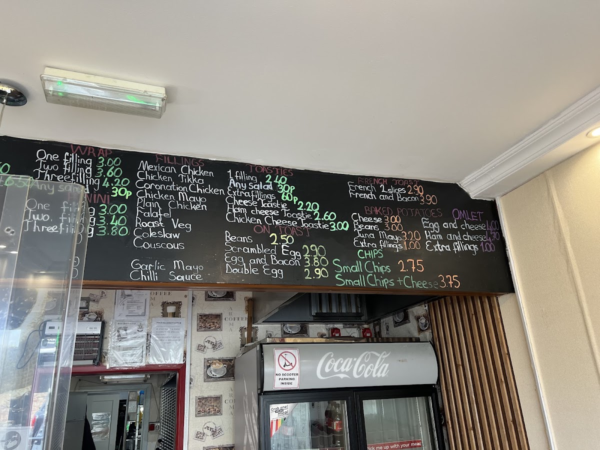 - Coffee and Hot Drinks: A range of coffee beverages that complement the food selection, catering to typical cafe drink preferences.